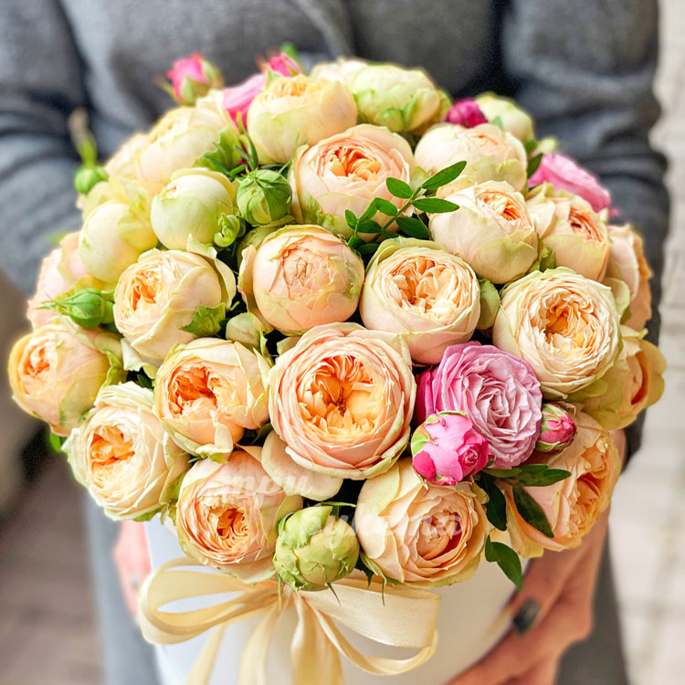 25 пионовидных роз в коробке