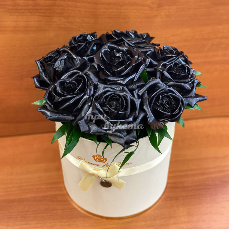 9 черных роз в коробочке