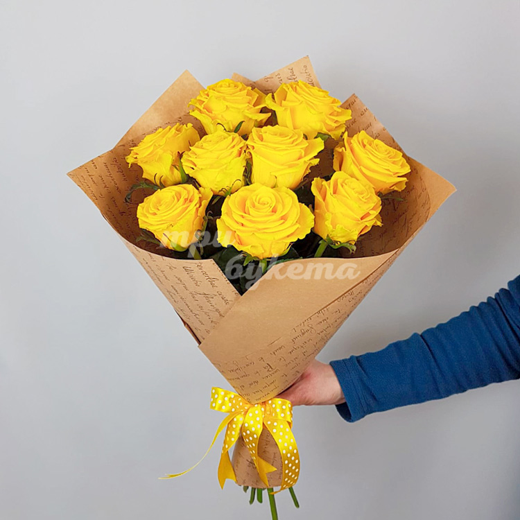 9 желтых роз в крафте