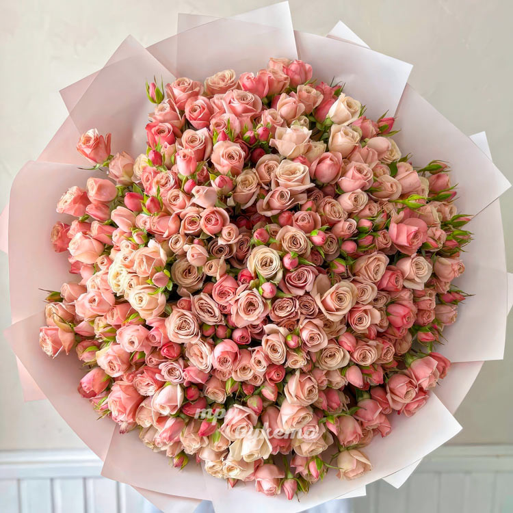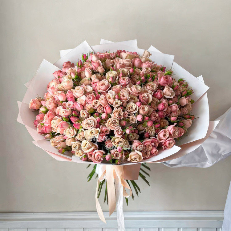 Букет из 51 нежно-розовой кустовой розы