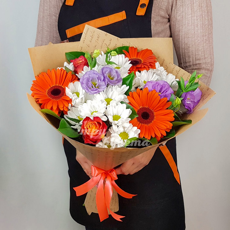 Букет из гербер и белых хризантем