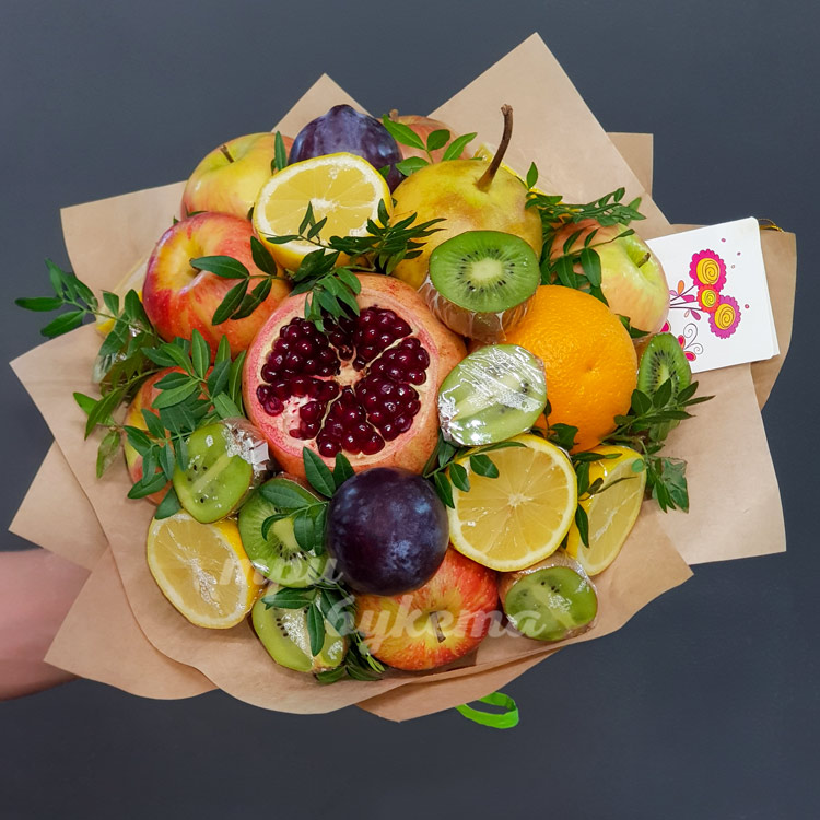 Букет из граната, яблок и киви