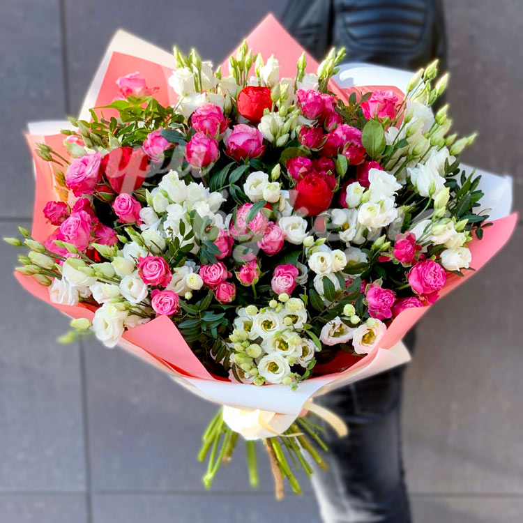 Букет из пионовидных роз и эустом