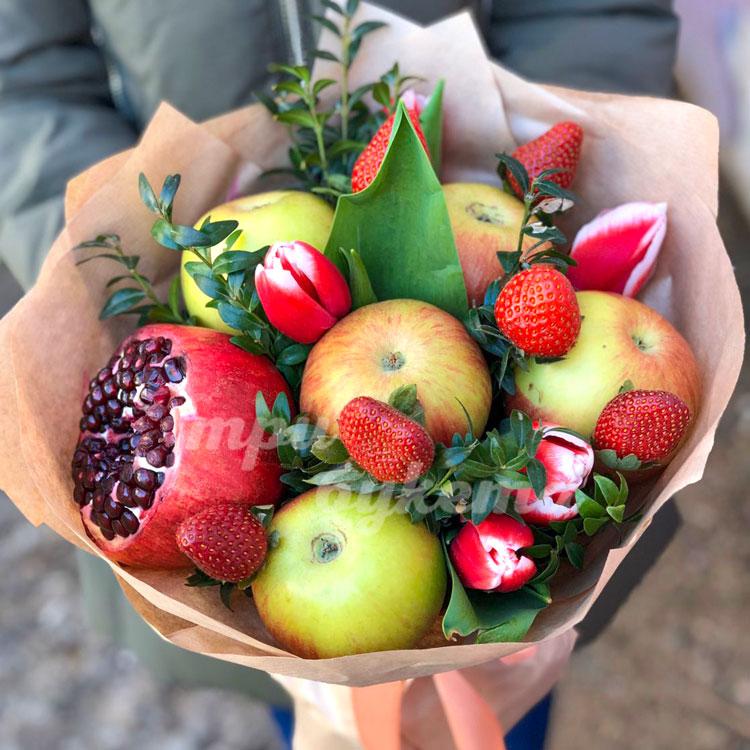 Букет из яблок и тюльпанов