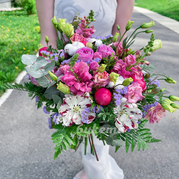 Букет пионов, антирринума и эустом