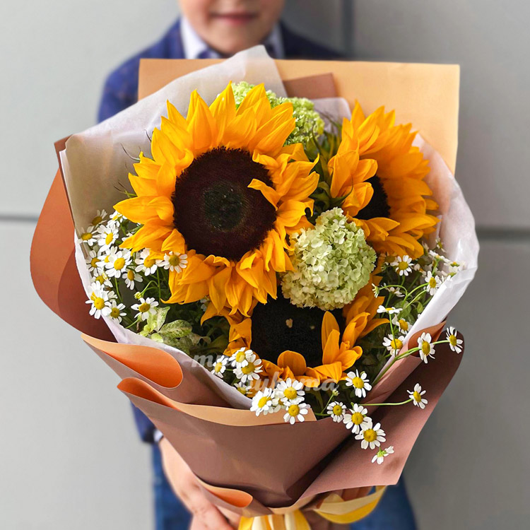 Букет подсолнухов и ромашек на 1 сентября