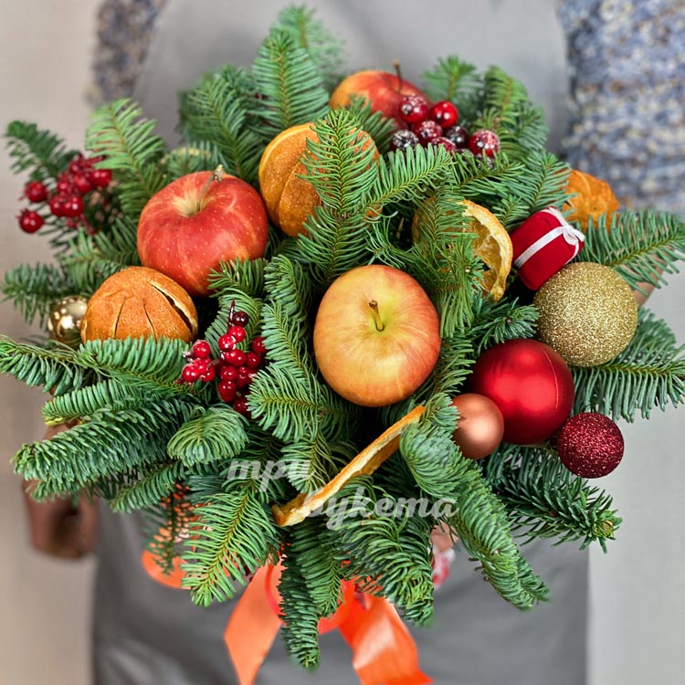 Хвойный букет из мандаринов и яблок