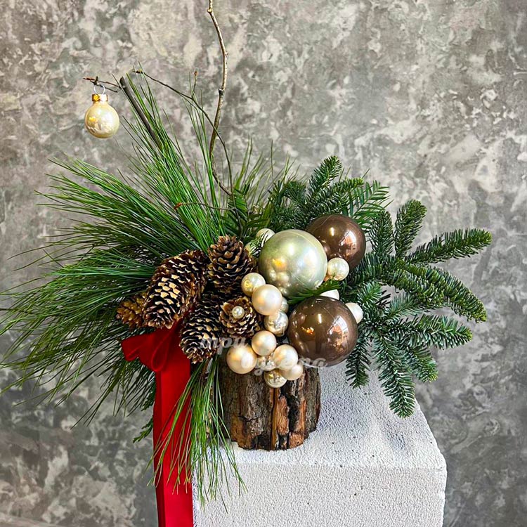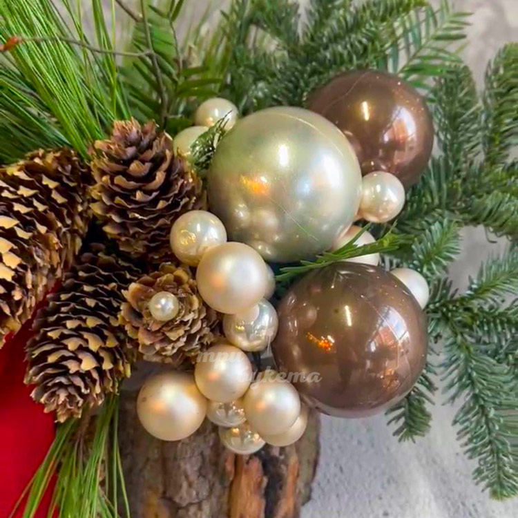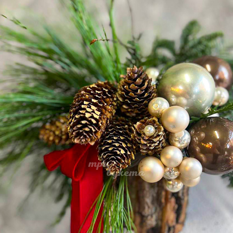Кашпо с шариками, шишками и хвоей