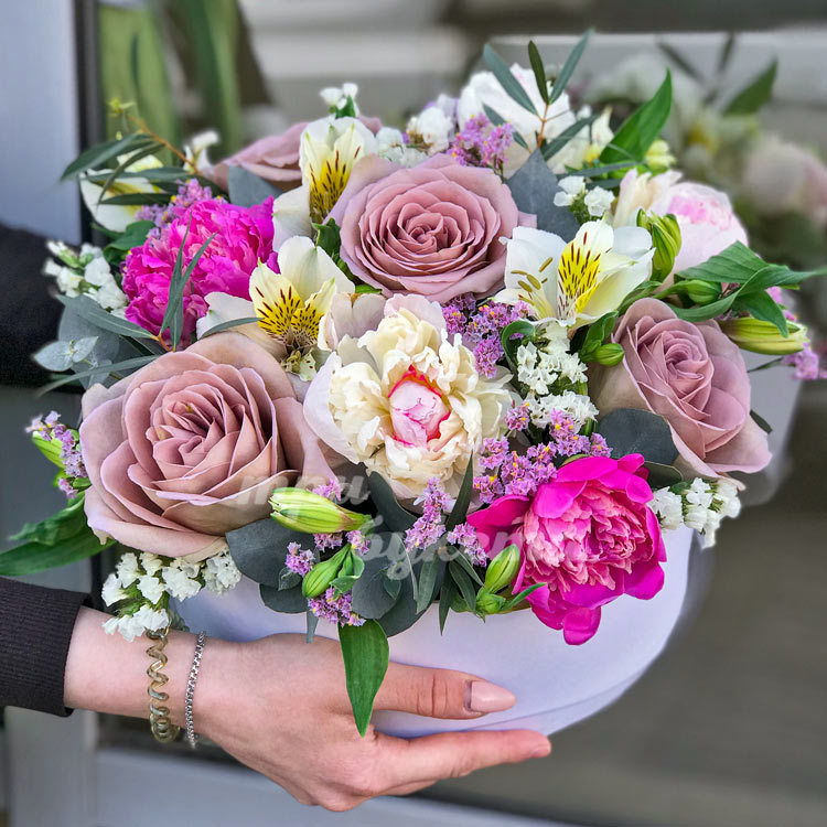 Коробка альстромерий, роз и пионов