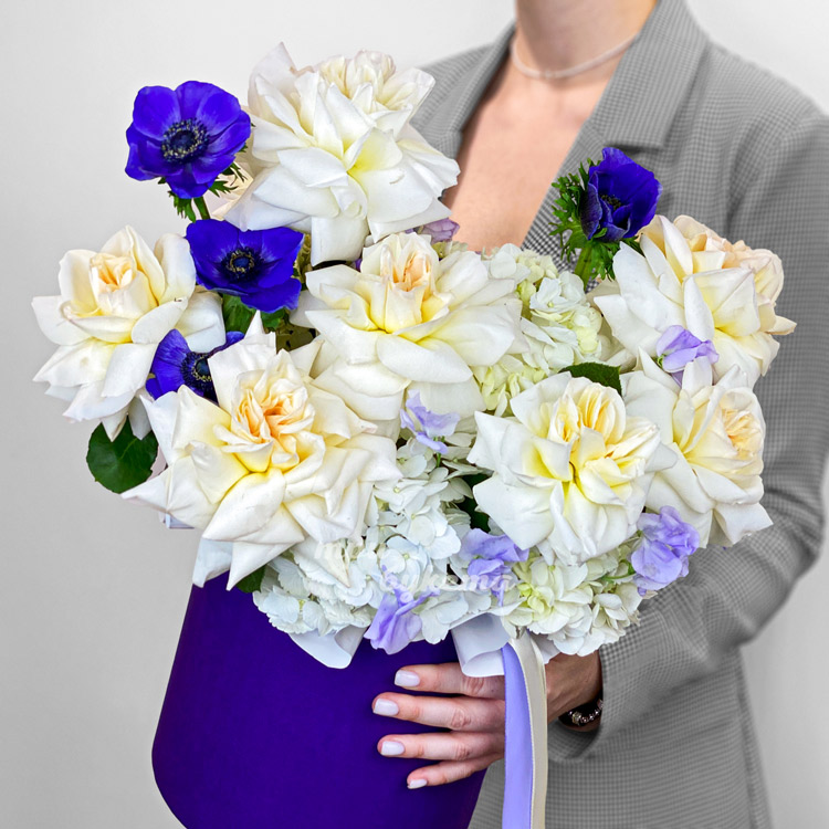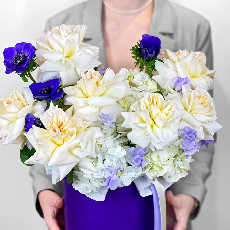 Коробка французских роз с анемонами