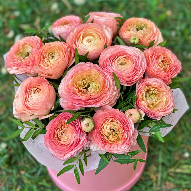 Коробка с персиковыми ранункулюсами