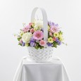 Корзина белых эустом и зеленых хризантем