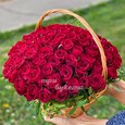 Корзина красных роз с эвкалиптом