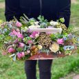 Корзина пионовидных роз и статицы