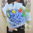 Корзина ирисов и хризантем