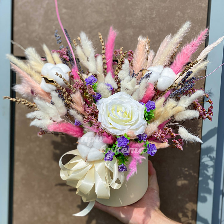 Лаванда и роза в шляпной коробке