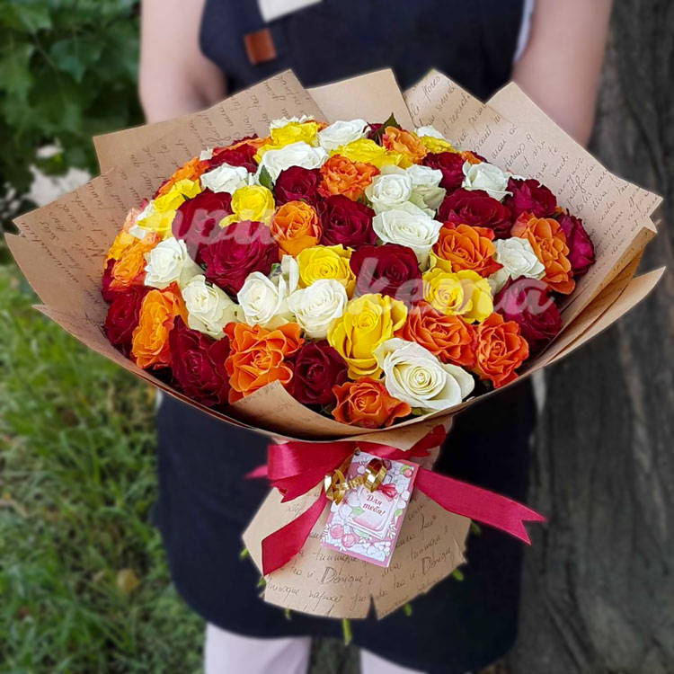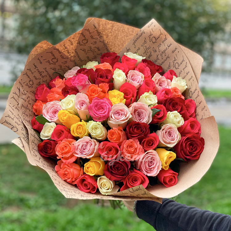 Разноцветный букет из роз